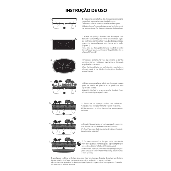 100% reciclável, cordas para o sistema de irrigação, uma bolinha