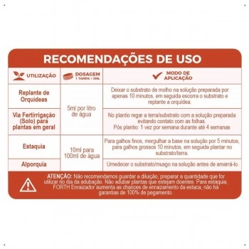 Para estaquias, o FORTH Enraizador aumenta as chances de pegamento, mas não garante 100% de enraizamento.