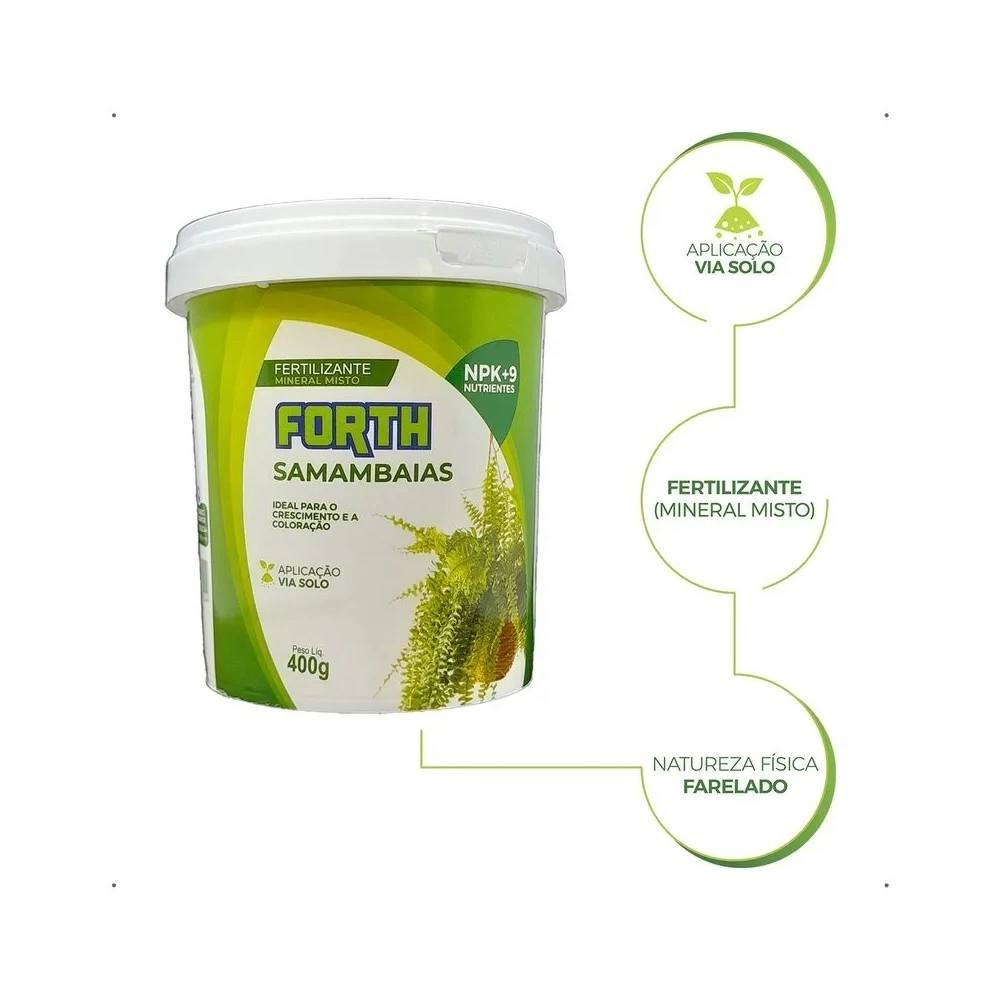 As samambaias da vovó eram sempre exuberantes e agora as suas também podem ser! O Forth Samambaias foi desenvolvido especialmente para nutrir, fortalecer e devolver o verde vibrante dessas plantas tão queridas. Com a fórmula certa, suas folhagens retomam o vigor, ganham brilho e crescem mais cheias, transformando qualquer ambiente em um espaço mais vivo e acolhedor.