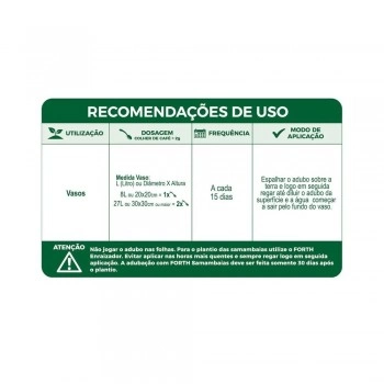 - Aplique o FORTH Samambaias apenas 30 dias após o plantio.